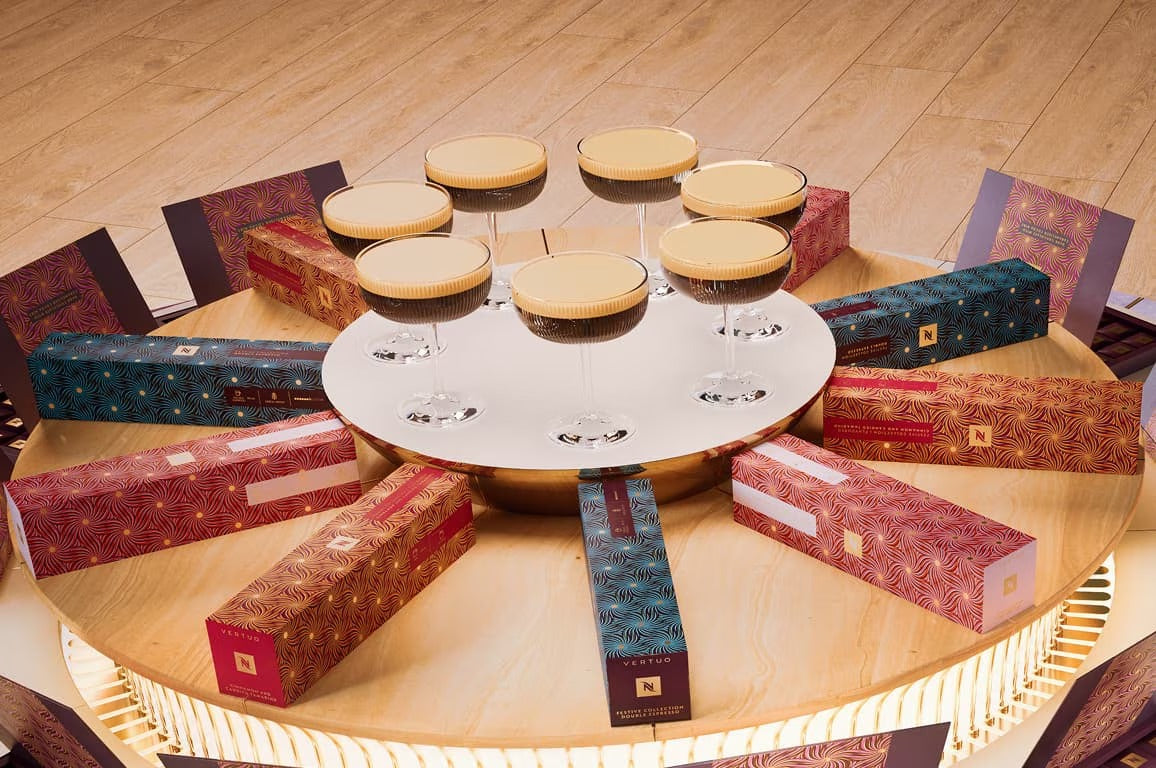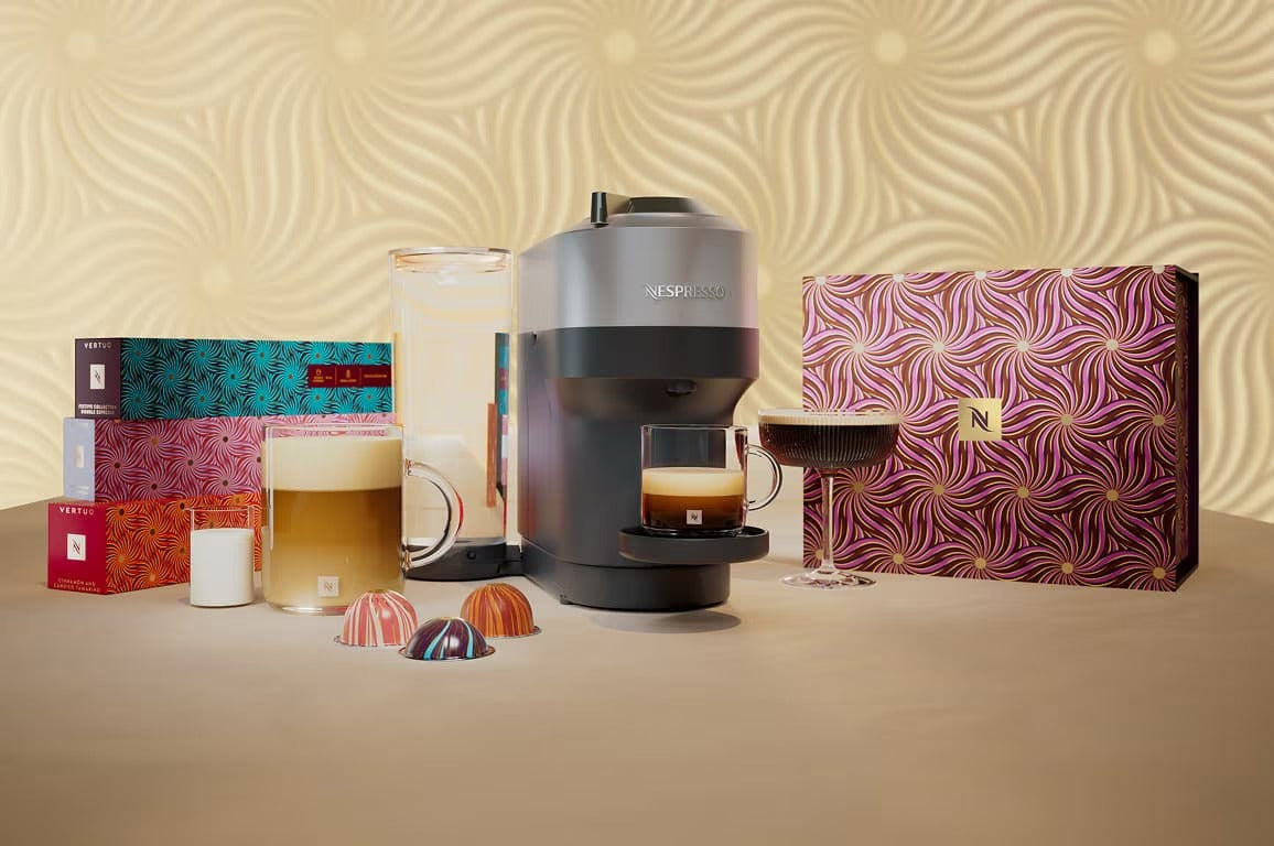 Gift magical coffee moments with the Nespresso Martini Pack. This exquisite set includes one sleeve of Altissio, one of Altissio Decaffeinato , and two Nespresso Martini Glasses. Perfect for crafting delicious Nespresso martinis and celebrating the holiday season in style.