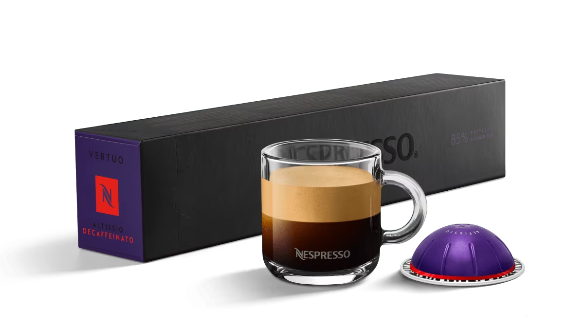 Altissio Decaffeinato's velvety crema sits luxuriously on your tongue. The decaffeinated Latin American blend is a full- bodied and bold espresso cloaked in a creamy cereal note.